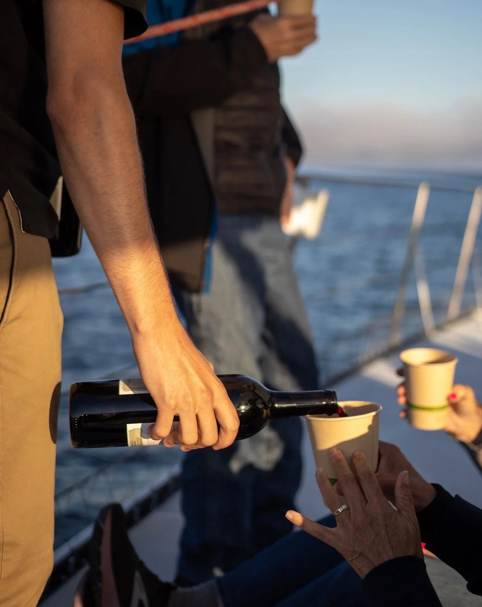 Serving the Storrs Santa Cruz Mountains Zinfandel aboard the Chardonnay II